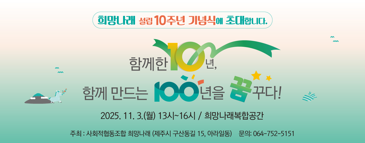 - 희망나래 설립 10주년 기념식에 초대합니다. 2025-10-29